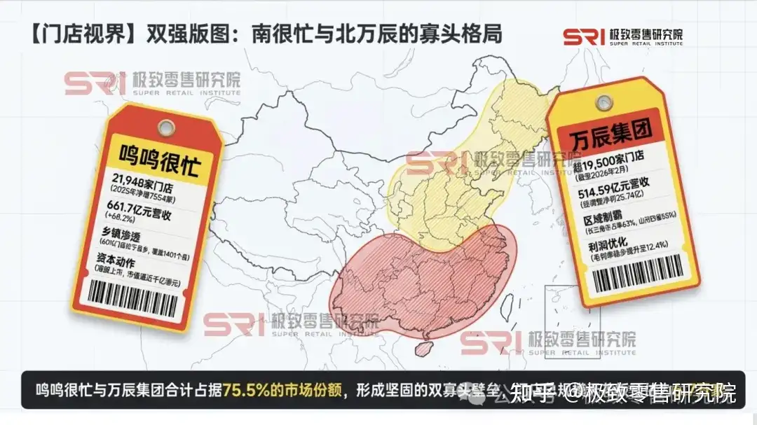 2026年,行业“双强”格局已然稳固。鸣鸣很忙与万辰集团合计占据75.5%的市场份额,形成“南很忙、北万辰”的区域错位竞争格局。全品类折扣超市的战争才刚刚打响。从垂直零食到全品类社区生活中心,这不仅是门店招牌的更换,更是中国实体零售供应链效率的一次大阅兵。