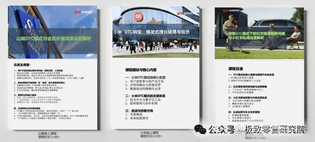 除深度行业报告外,极致零售研究院(SRI)同时推出了体系化的线上课程,覆盖服饰、消费电子、新能源汽车等多个关键领域。