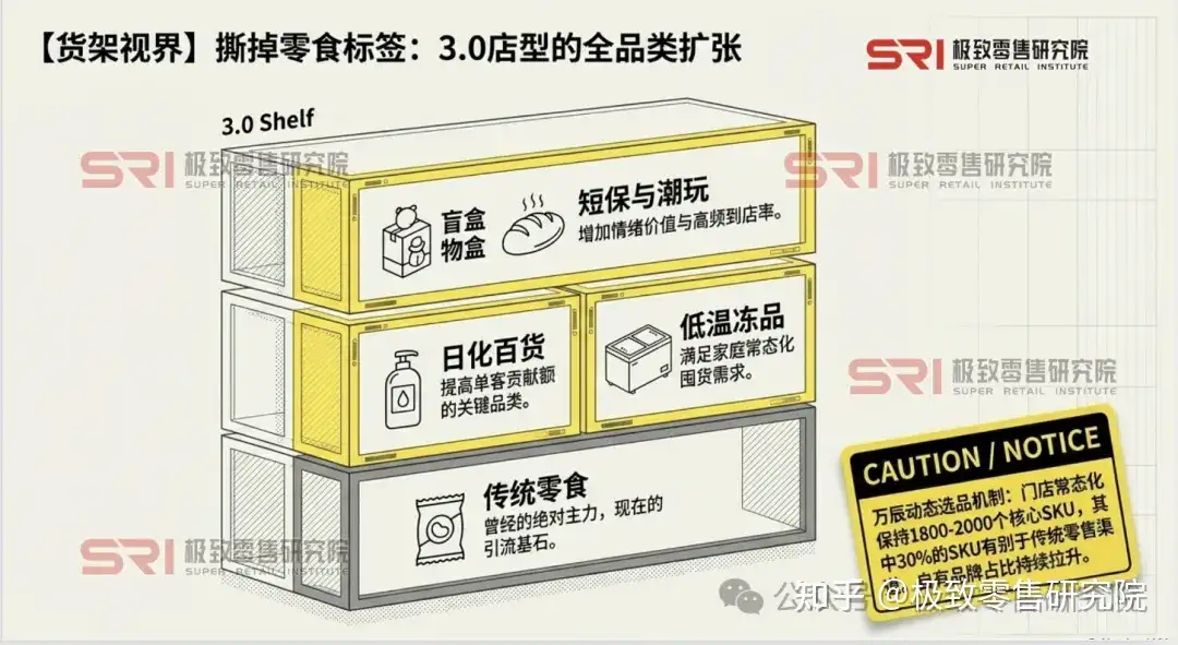• 商品丰富度的跃升: 万辰集团在招股书中明确,其动态选品机制使门店常态化保持1800至2000个核心SKU,其中30%的SKU有别于传统零售渠道。