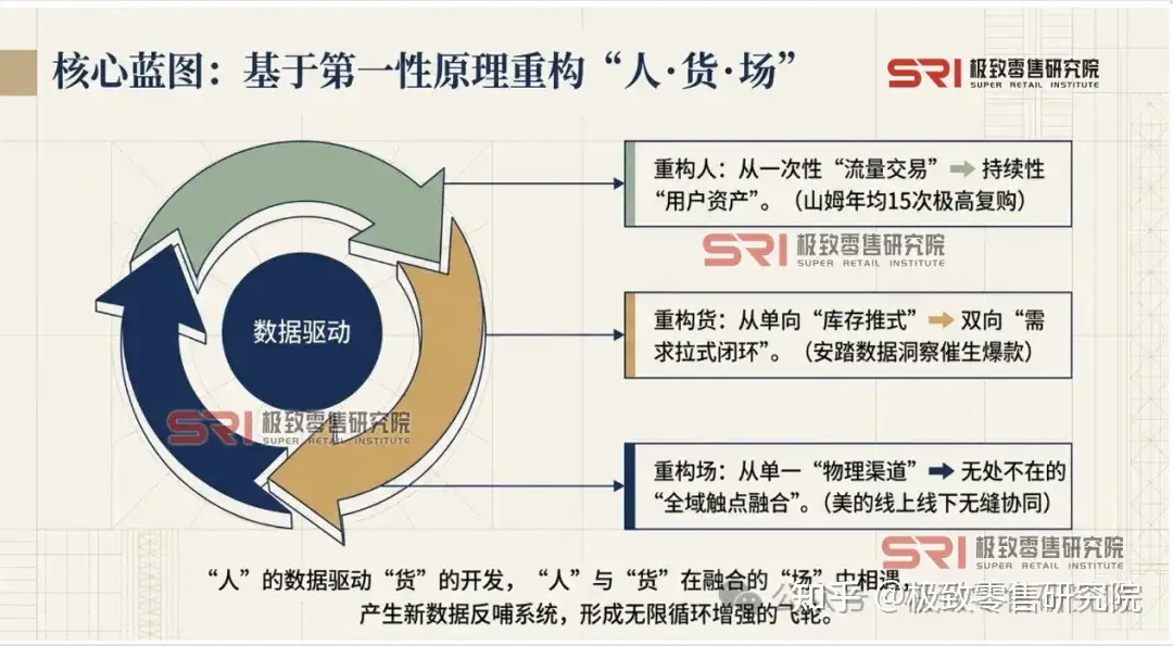 山姆的爆款来自会员的“购买投票”,安踏的氢跑鞋来自用户需求的洞察,美的的产品迭代来自线上线下数据的实时反馈。