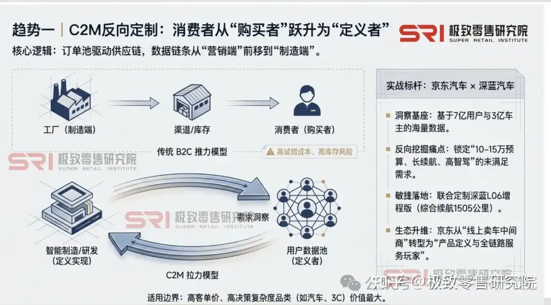 启示:数据链条正从“营销端”前移到“研发端”。对于汽车、3C数码等高客单价、高决策复杂度的品类,C2M的价值尤为巨大。