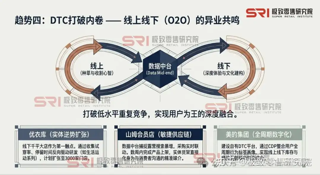 这一反向实践给我们的核心哲思在于DTC不是线上对线下的“取代关系”,而是两者在“用户为王”第一性原理指引下的深度融合。 线上负责种草与收割心智,线下承载深度体验与品牌文化建构。两者协同互哺,最终通过数据中台统一管理和运营。
